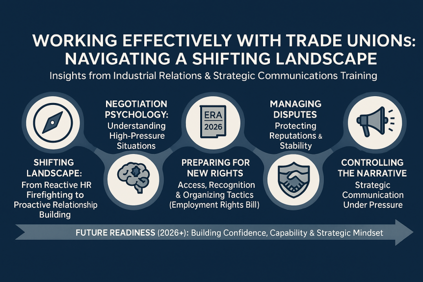 The ERA will introduce legal obligations — but the wider environment will introduce strategic challenges. Organisations that invest now in employee relations capability, public affairs training, and strategic communications skills will have a significant advantage.